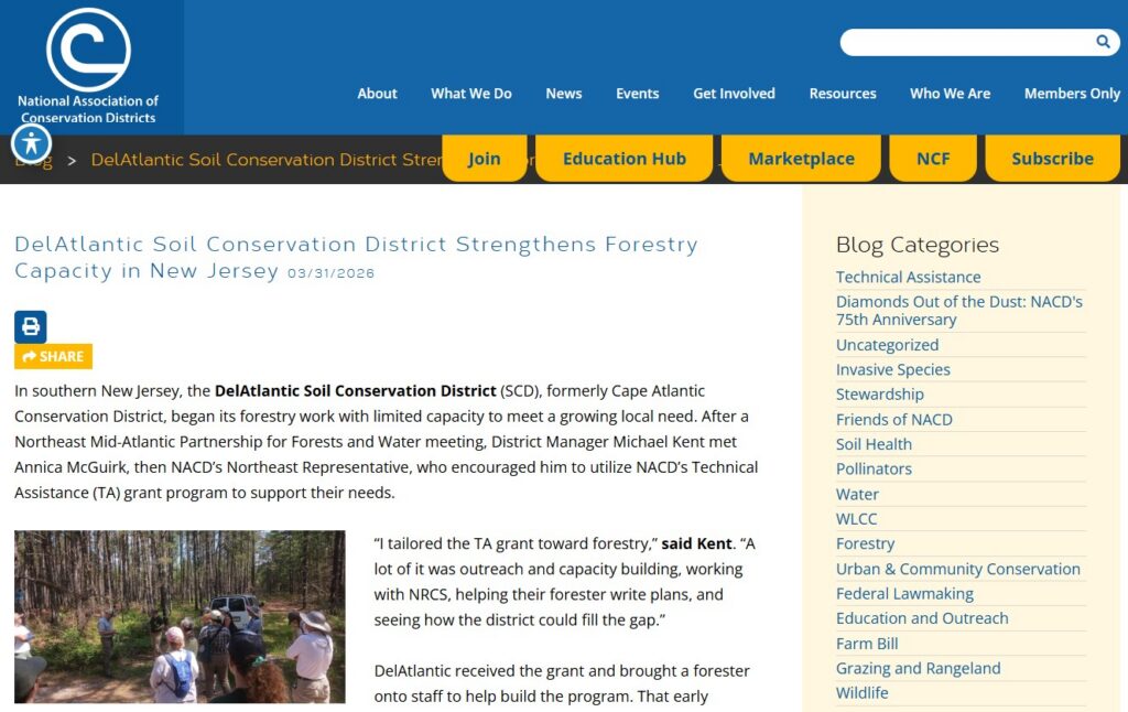 The DelAtlantic Soil Conservation District is gaining recognition for its growing role in forestry management across southern New Jersey.
